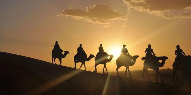 Recorrer el desierto de Agafay a lomos de un camello es una experiencia mágica que no puede faltar en el circuito más bonito de Marrakech y una experiencia única en el desierto de Agafay. La puesta de sol sobre las extensiones rocosas ofrece colores irreales que permanecerán grabados en su memoria. Para los amantes de las emociones fuertes, The Moroccan Travel también ofrece excursiones en quad, que permiten descubrir los paisajes salvajes y espectaculares de este desierto único.