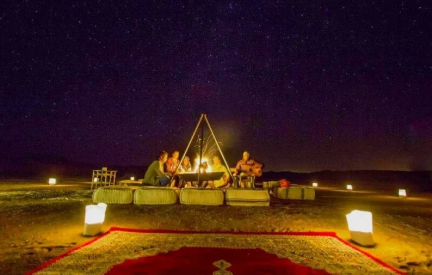 - Noche en un campamento tradicional del desierto del Sáhara bajo un cielo estrellado.
